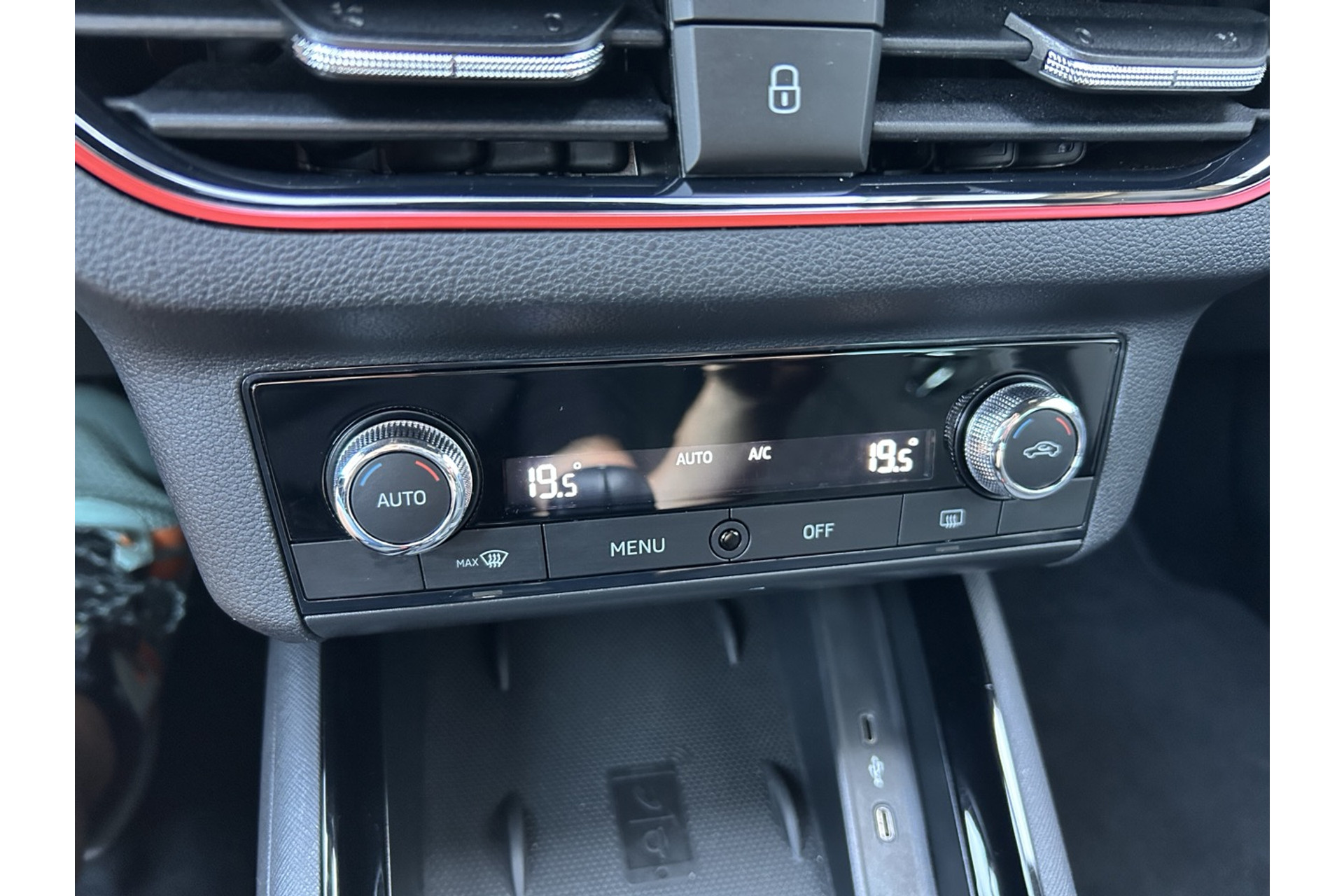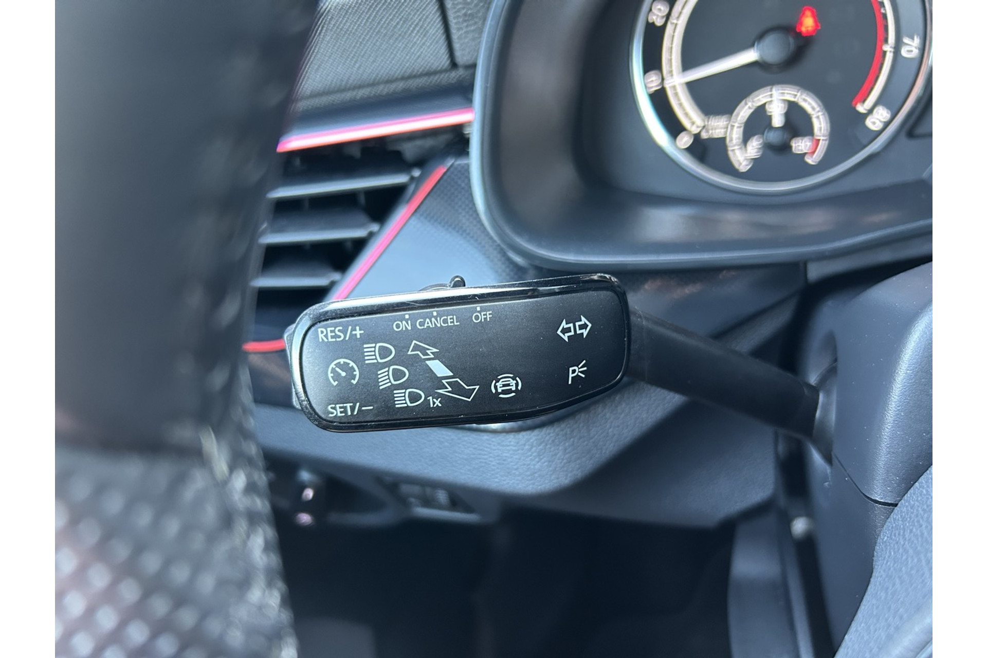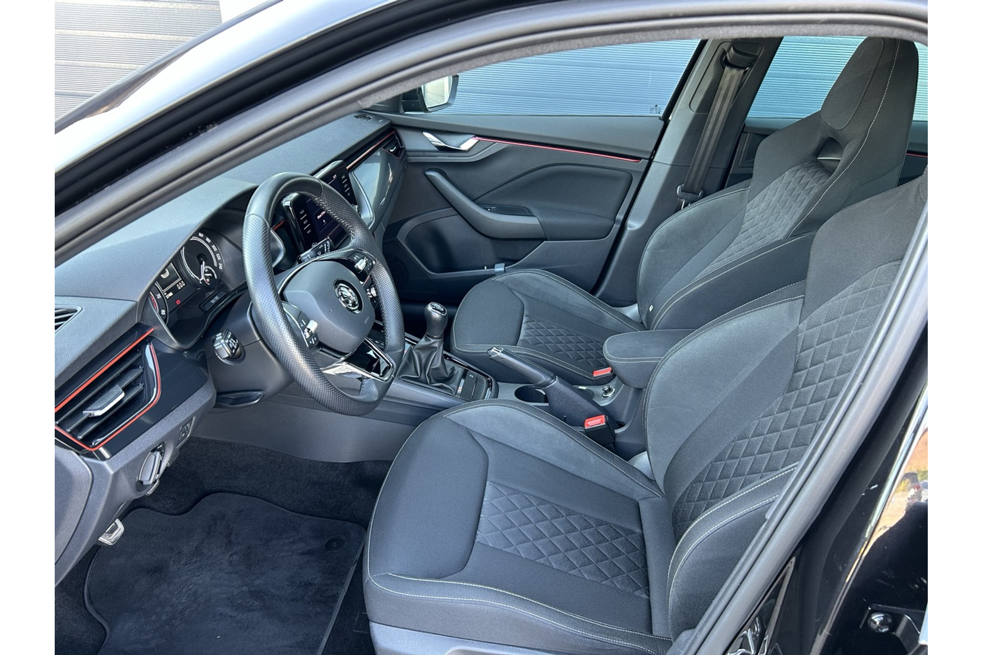 - LED interieurpakket: rode verlichting in dashboard, portieren, middenconsole en voetenruimte