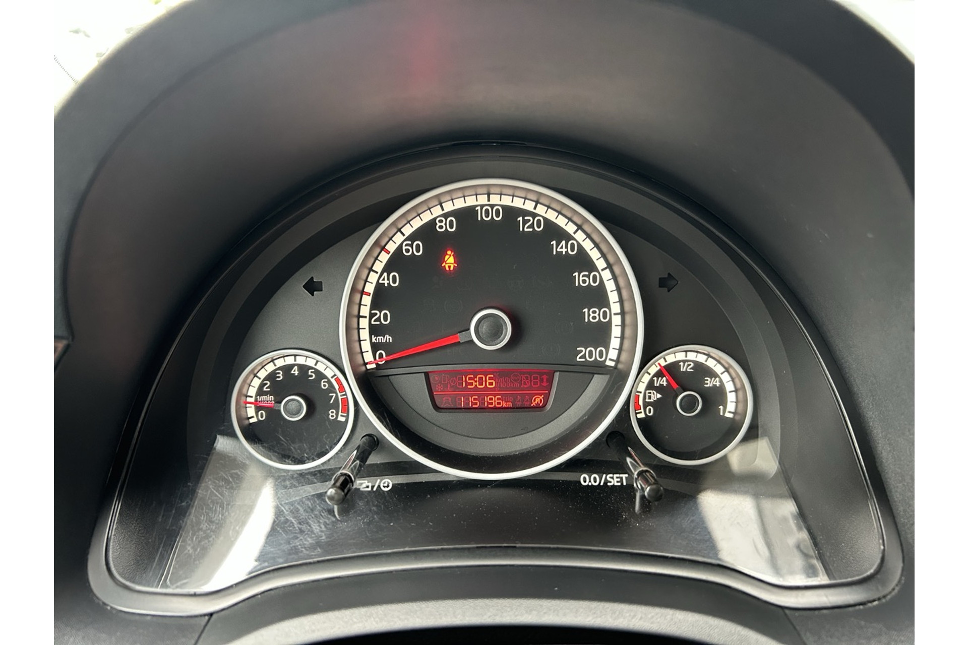 - Instrumentenpaneel bestaande uit snelheidsmeter, kilometerteller, dagteller, toerenteller, klokje en brandstofmeter